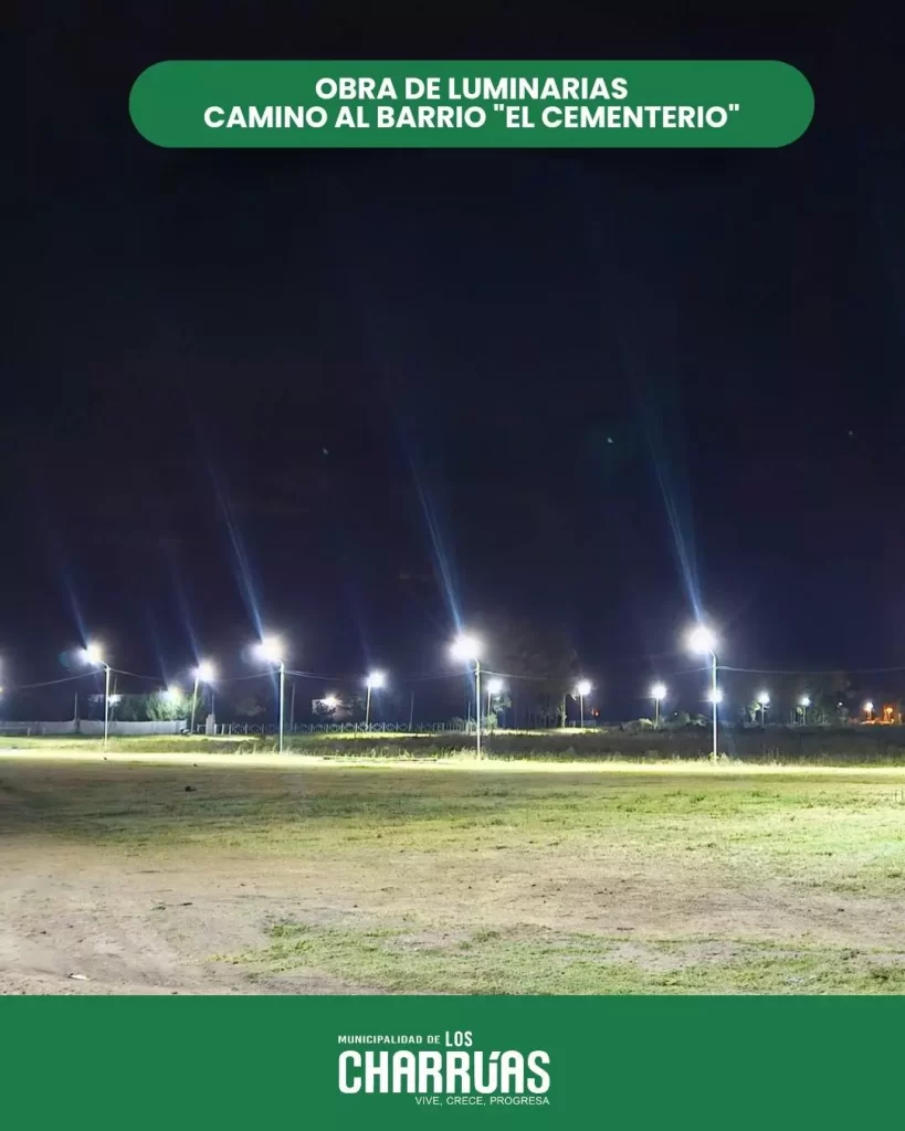 Como parte de nuestro compromiso con la comunidad, continuamos mejorando la iluminación en el ejido urbano, en esta oportunidad, favorecido este camino transitado por vecinos del Barrio del Cementerio, del ejido rural y visitantes del Cementerio Municipal de Los Charrúas.