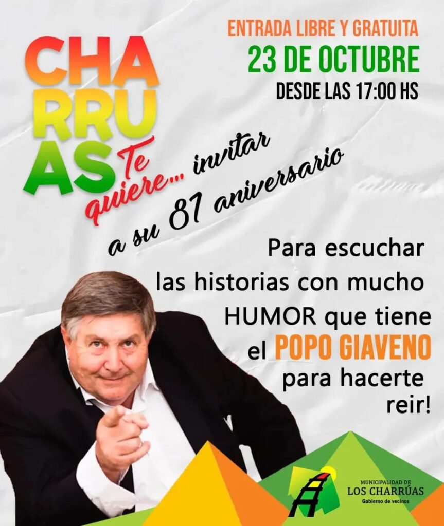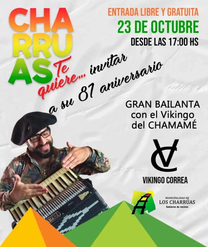 #CHARRUAStequiero 15 octubre, 2022 generales 81 Aniversario Domingo 23 de Octubre – Entrada libre y gratuita CHARRUAS te quiere… Los Palmae Vikingo del Chamamé Popo Giaveno