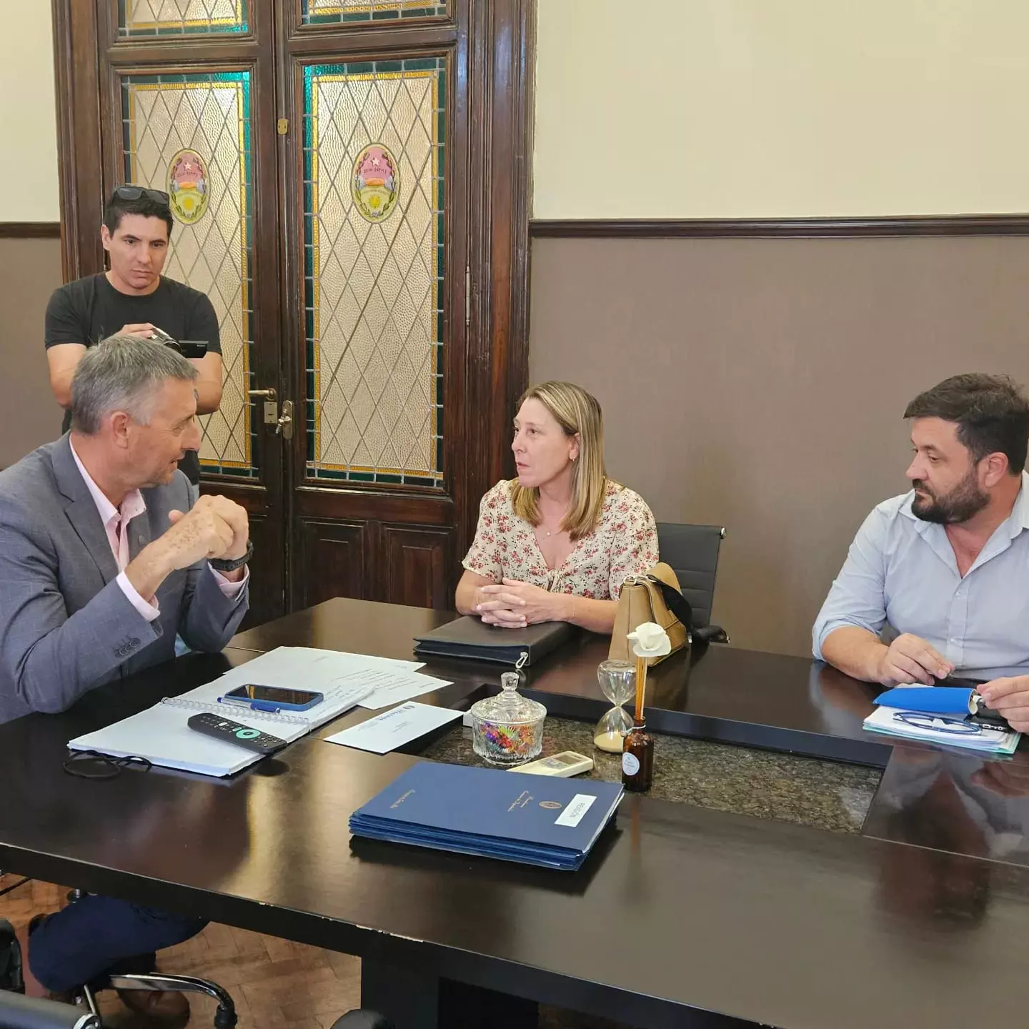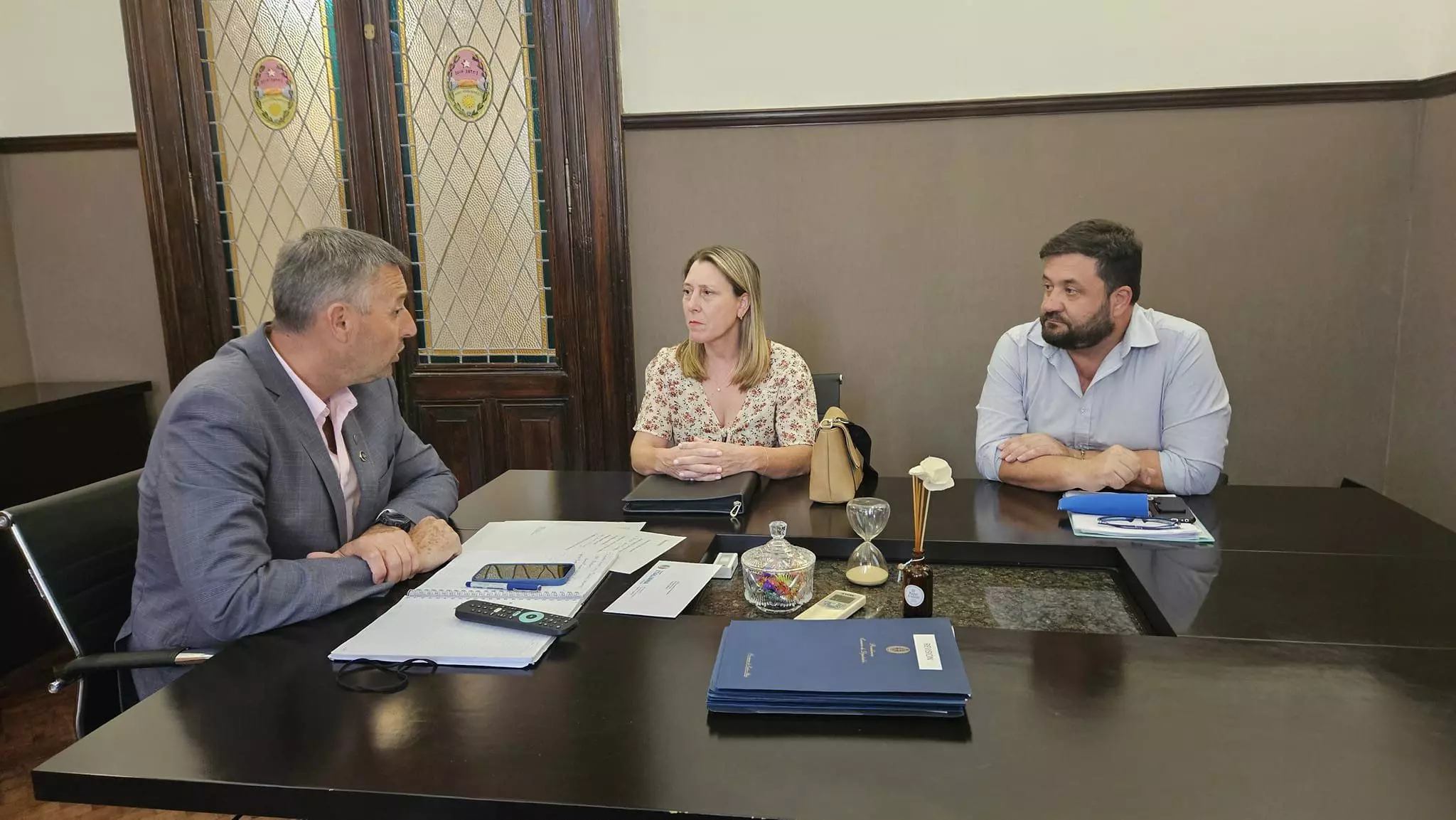 La Presidente Municipal Andrea Imoberdorff y su Secretario de Gobierno, Marcelo Pascariello, visitaron hoy, martes 20, la casa de gobierno, donde se reunieron con el presidente de la Cámara de Diputados, Gustavo Hein, para informar sobre el estado y pedir acompañamiento en gestionar los arreglos de la Ruta Provincial N°4. Durante la visita, se entregaron los expedientes con nuevos relevamientos de la ruta.