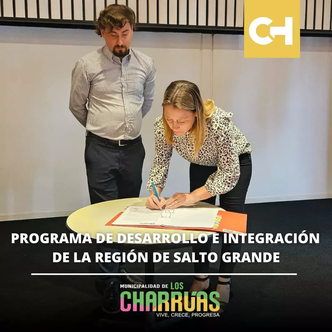 La Presidente Municipal y su secretario de gobierno, asistieron al edificio de la Delegación Argentina en Salto Grande, donde se llevó a cabo la firma del acta de entrega definitiva de las letras corpóreas del programa de desarrollo e integración de la región de Salto Grande. Este evento contó con la presencia de funcionarios de la provincia, municipios y comunas de la región, incluyendo Concordia, Federación y Colón, así como el equipo del programa.